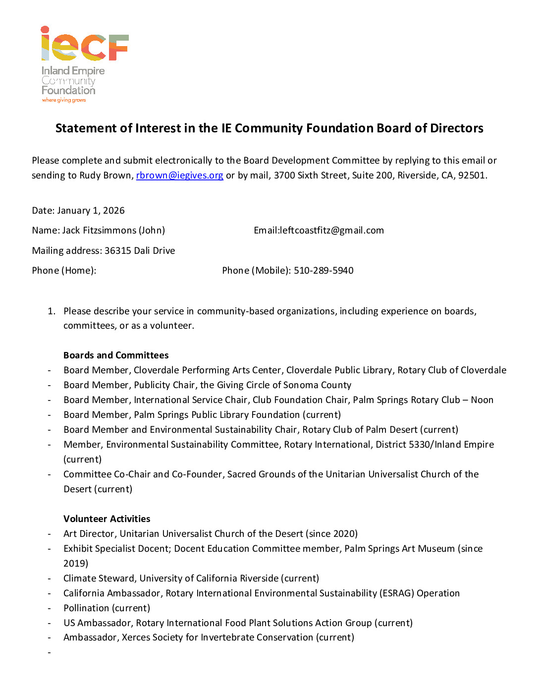 Jack Fitzsimmons (John) – IECF Board Member Statement of Interest Form and Resume