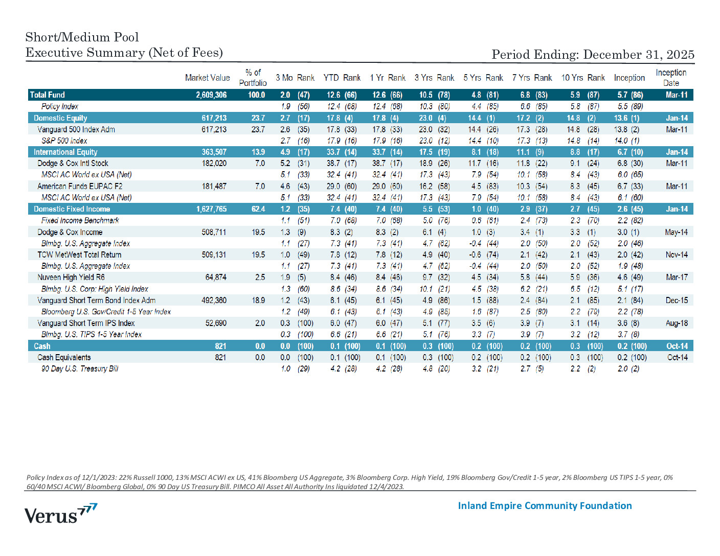 ieCF ShortMed Pool Executive Summary 4Q 2025