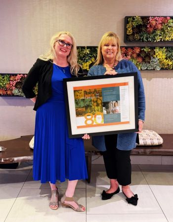 At the 2025 IEEPS meeting, Brie Griset Smith, CSPG, (L) presented Teresa (R) a framed collage of her story in our annual report.
